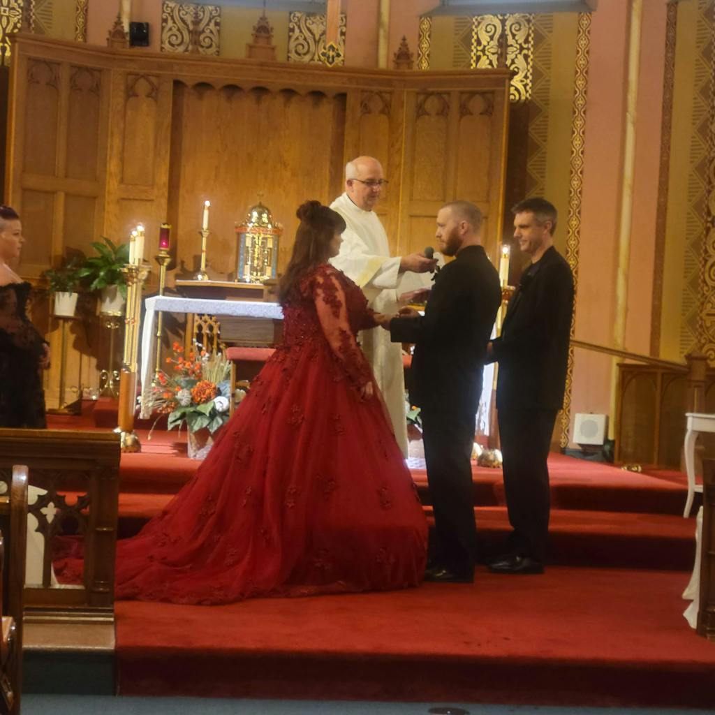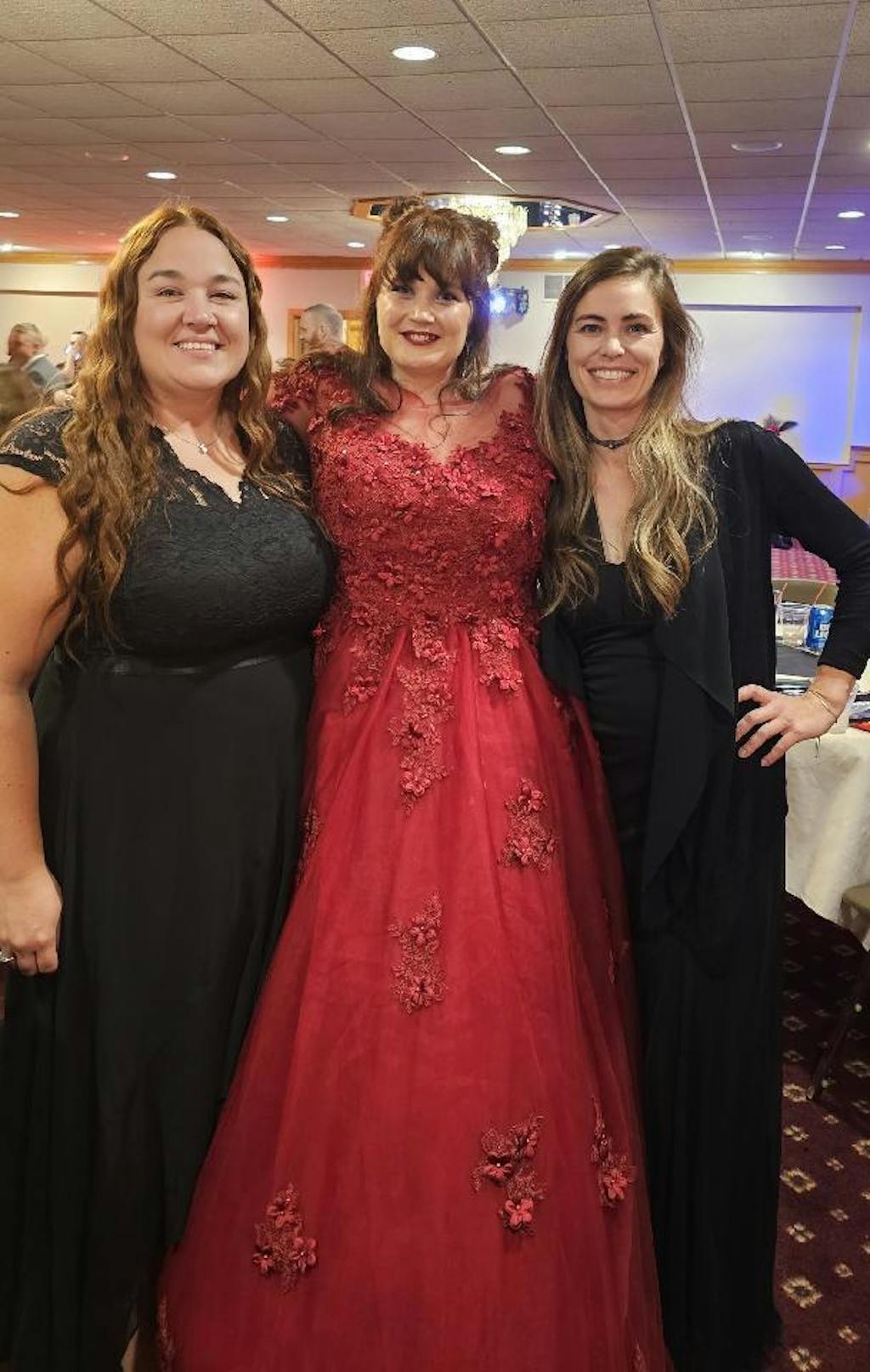 Classic and romantic, this stunning, dark red gown is artisan-crafted in tulle and provides a beautiful and photogenic silhouette, accented in beaded 3D lace flower appliqué work.