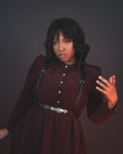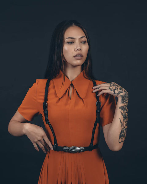 The Dearly Departed Harness, an intricate hand buckled harness and a part of the Victorian Harness Series.