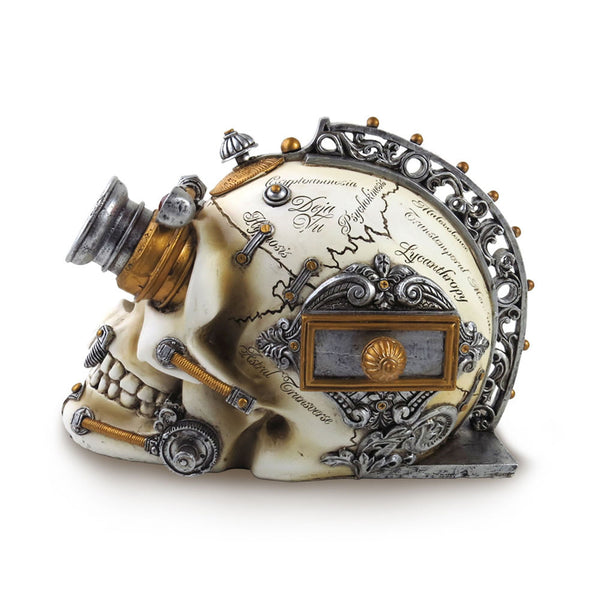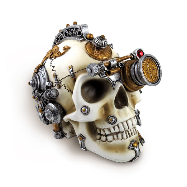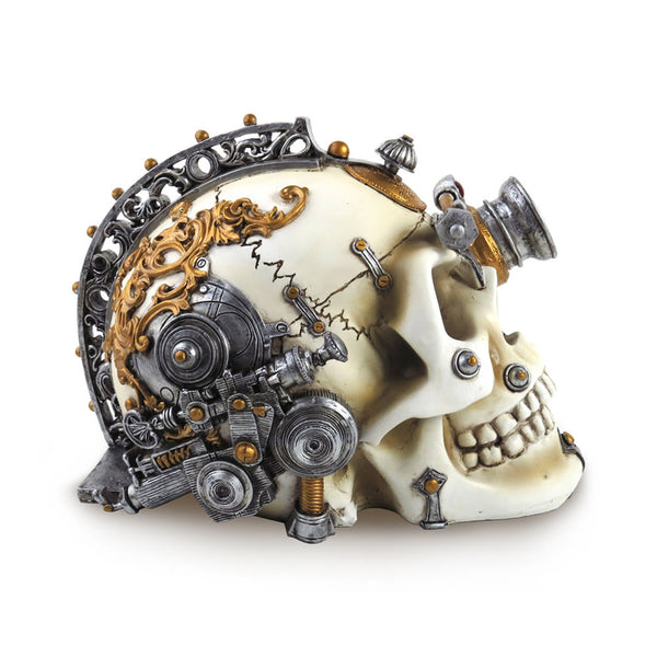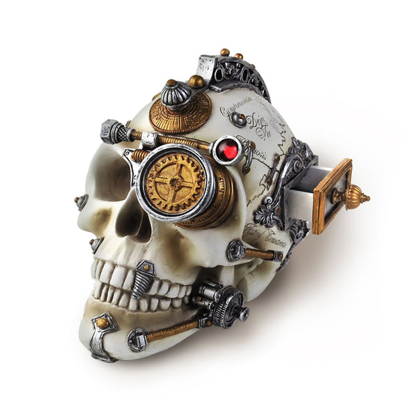 A fabulous addition to your alternative home - a skull emblazoned with an array of gothic metallic steampunk design details.